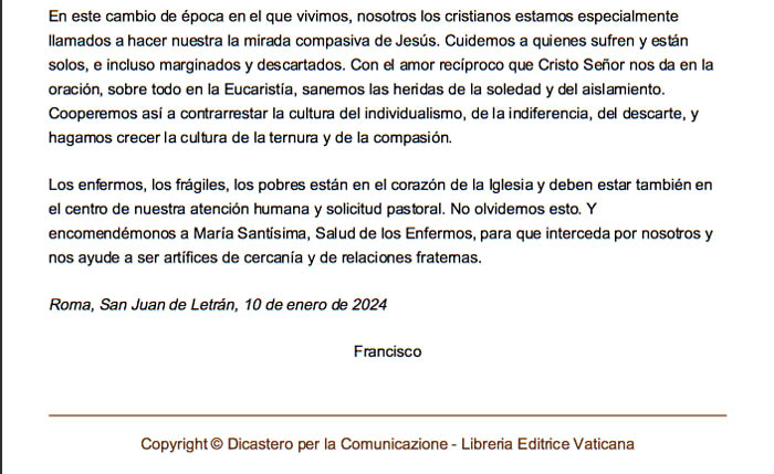 *Mensaje del Papa Francisco.