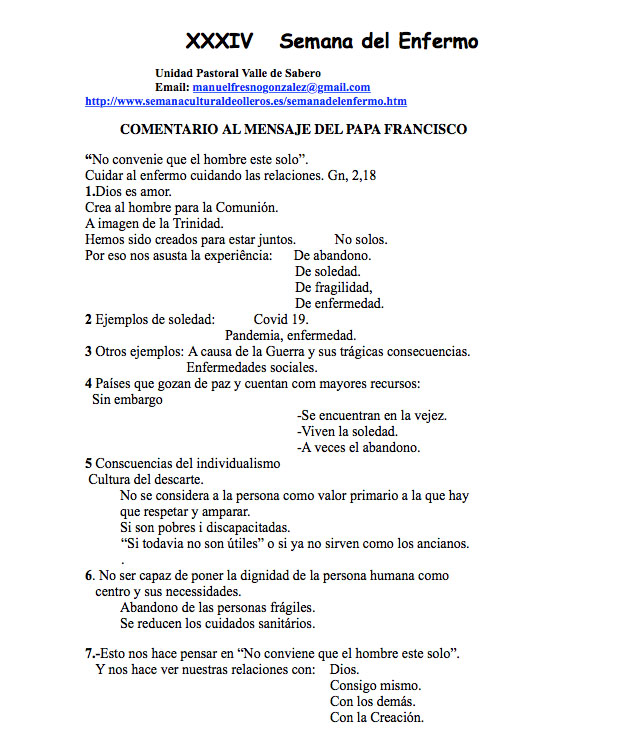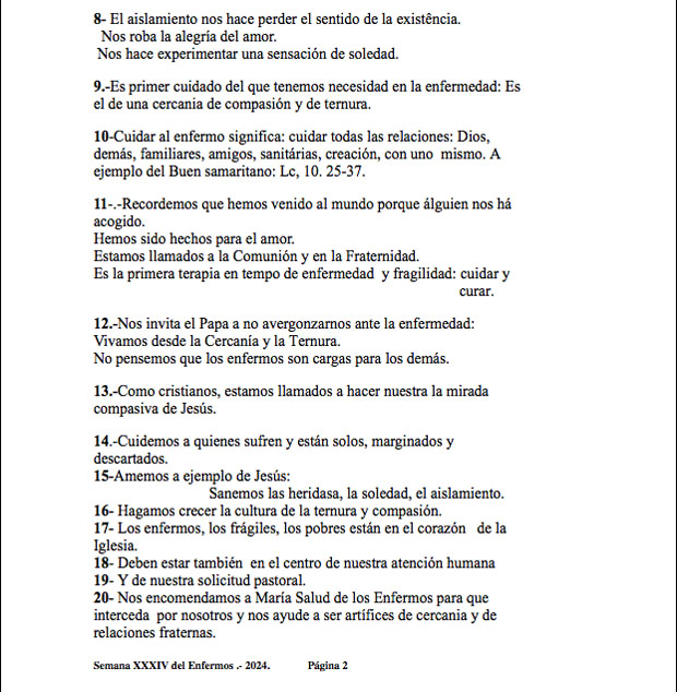 4. • "Comprometernos todos en la pastoral sanitaria de manera especial: comunidades cristianas, familias etc.".